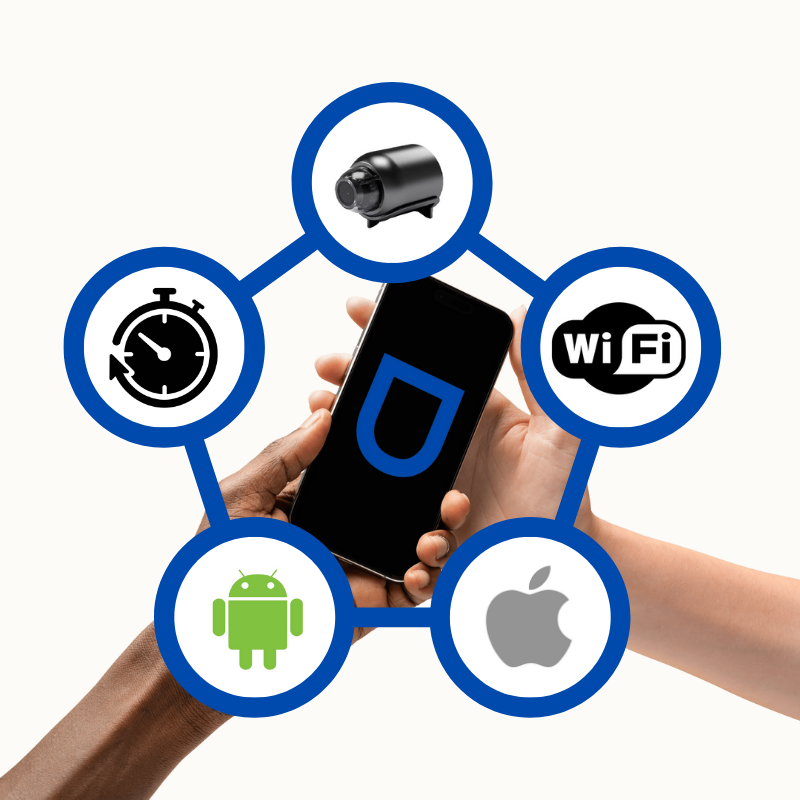 Cette mini caméra est compatible avec iOS et Android, accessible sur smartphone et tablette.